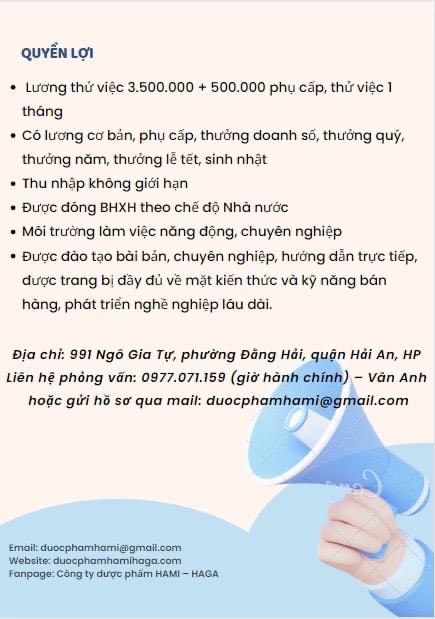 Gửi Cv qua địa chỉ: duocphamhami@gmail.com